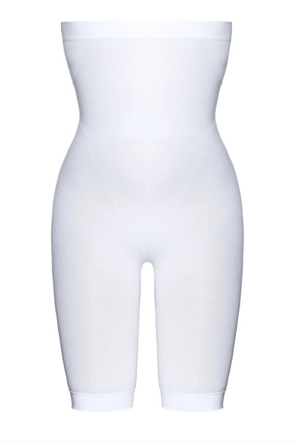 Bezszwowe figi damskie z wysokim stanem, idealnie dopasowane do ciała. Doskonałe pod obcisłe ubrania, dzięki przedłużonym nogawkom, które modelują sylwetkę i zapobiegają otarciom ud. Dodatkowe wzmocnienia dzianiny spłaszczają brzuch i biodra, podkreślają linię talii, podnoszą oraz wyszczuplają pośladki, zapewniając efekt perfekcyjnej sylwetki.