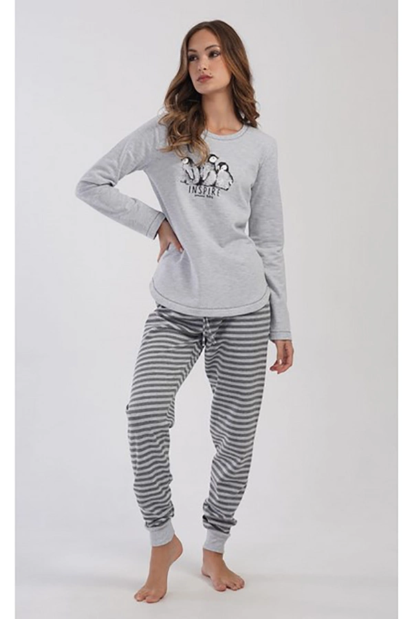 Piżama damska długi rękaw, długie spodnie 4030330000 bawełna ocieplana