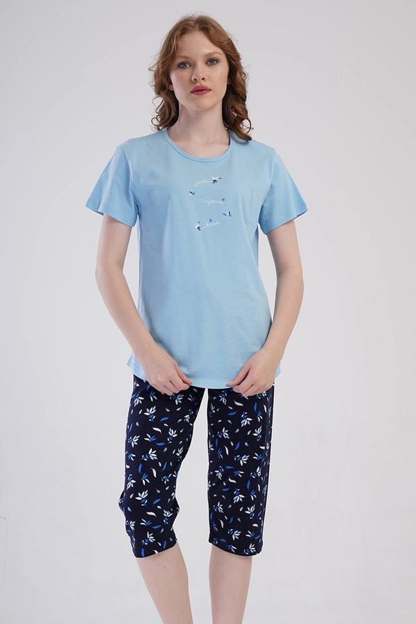 Piżama damska krótki rękaw, 3/4 spodnie 4080573039 Vienetta